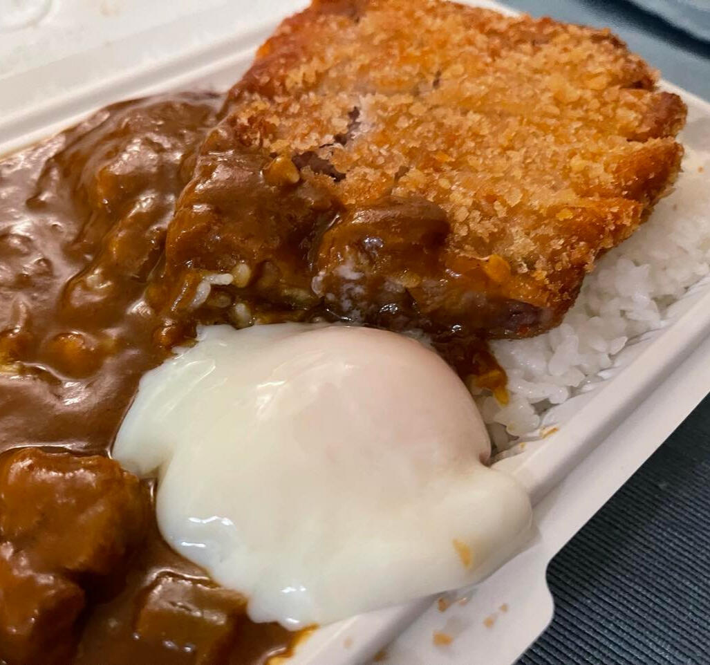 This classic comfort food is served generously. It is paired with a fried chicken cutlet and a poached egg and sits over a bed of steamed rice. The curry is filled with fantastic flavor, mildly spicy, with thick cuts of beef, popoto, carrots, and onions.