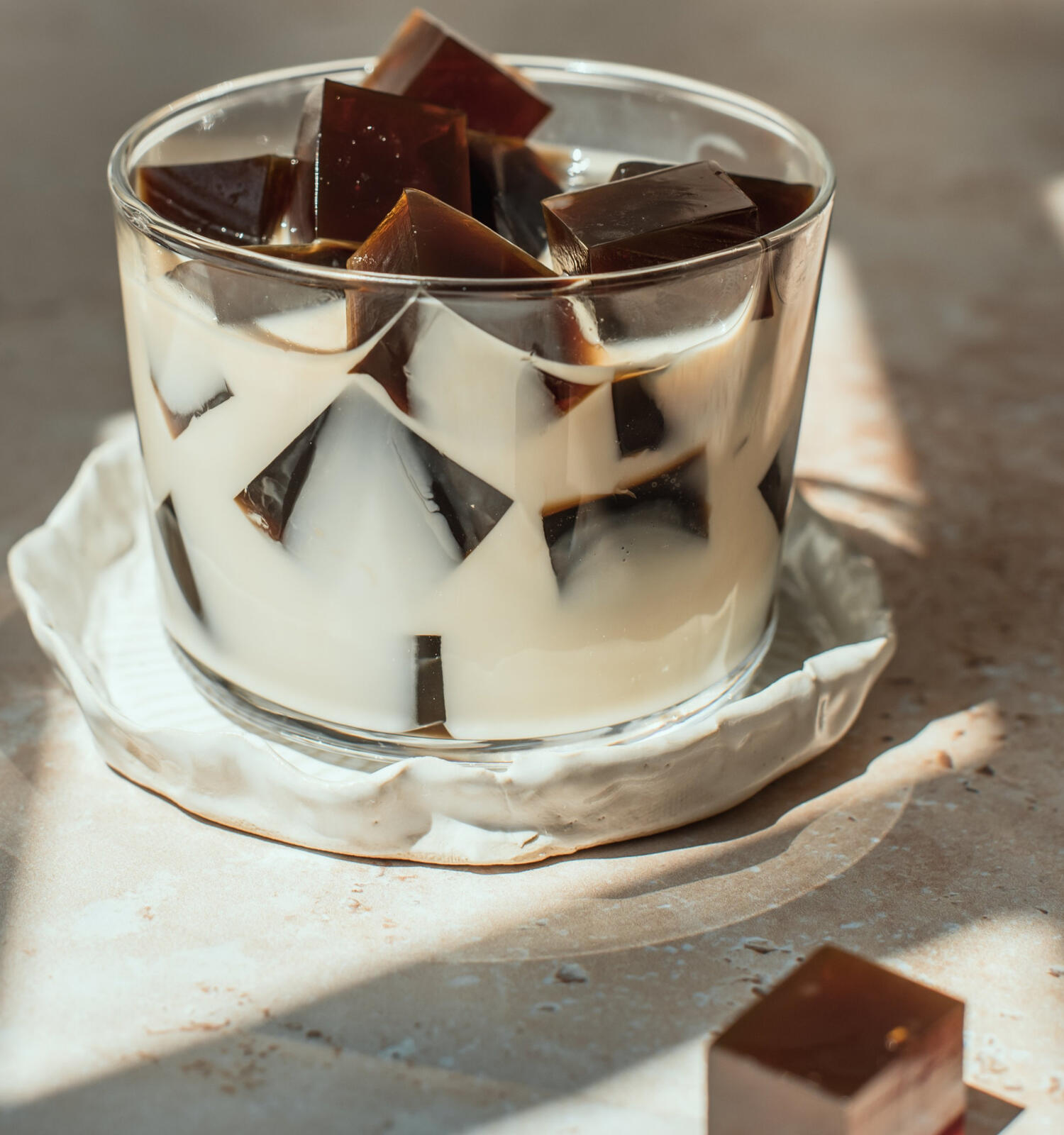 A deliciously bitter dessert of coffee jelly cubes submerged in a mix of evaporated and condensed milk, then topped with a generous whipped cream topping.Ask about getting your coffee jelly with steamed milk, to keep cozy during the chill.
