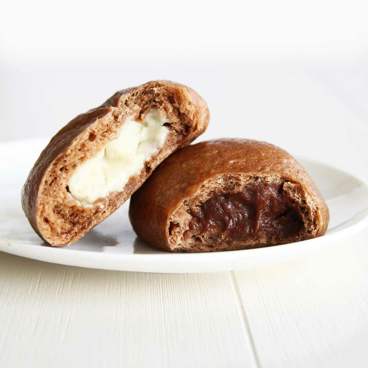 Soft, cloud-like steamed buns offered in two indulgent fillings: one bursting with silky, golden custard that melts into a warm, creamy sweetness, and the other oozing rich, velvety chocolate for a deep, cocoa-kissed delight. Each bite is tender, comforting, and irresistibly satisfying—simple pleasures elevated to pure dessert bliss.Served in a set of 2, 3, 6, & a Dozen.