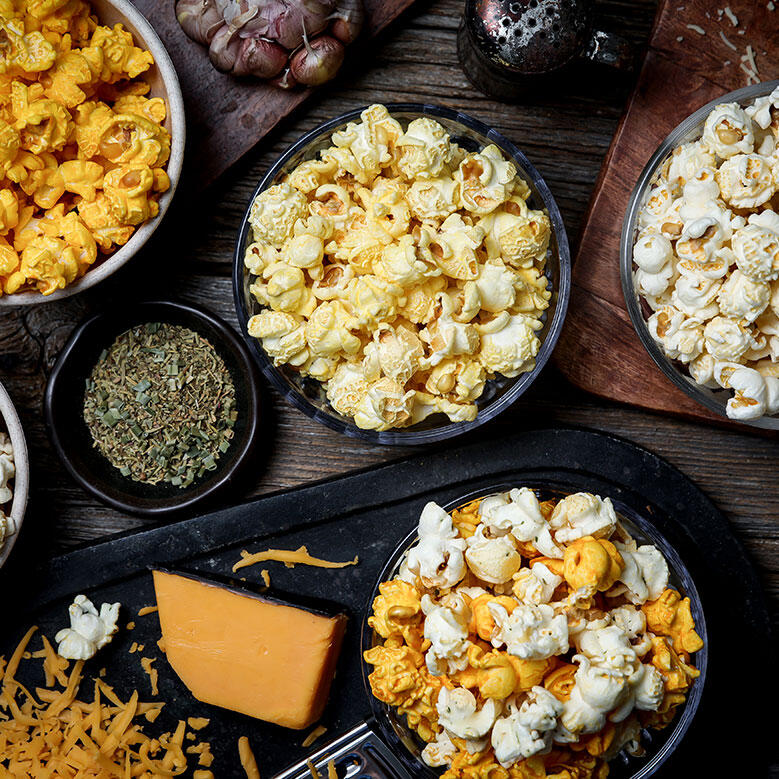 This is an irresistible finger snack: popped corn kernels that are a mix of fluffy, crispy, and crunchy in one bite. What's better than a bucket of popcorn? Flavored popcorn, that's what!Flavors: Salt, Butter, Furikake, Cheese, Ranch, Caramel