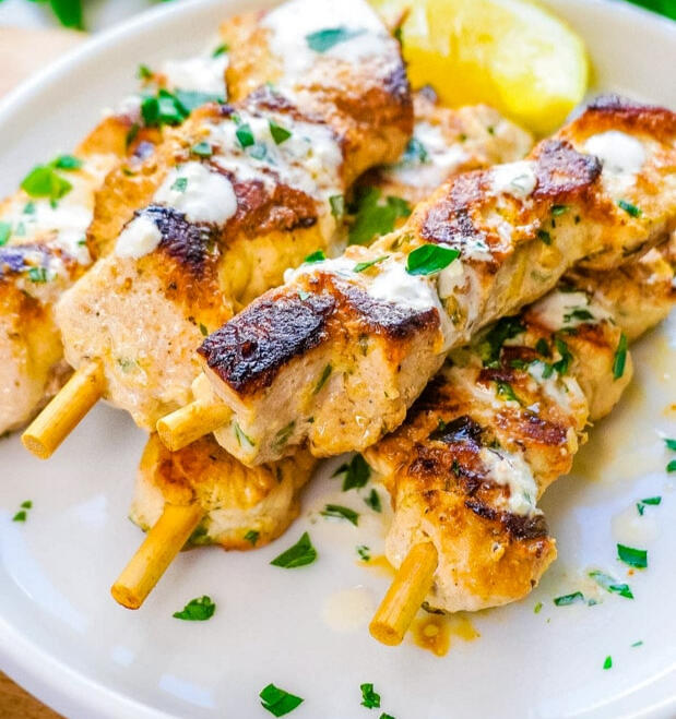 These yakitori skewers are loaded with vibrant flavors. They are doused in a creamy yogurt marinade seasoned with aromatic ginger and herbs and then grilled to perfection.