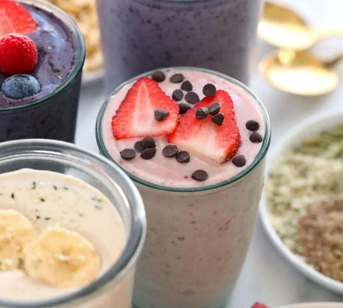 Smooth, creamy, and crafted to fuel your day, these powerhouse shakes blend protein-rich Greek yogurt, wholesome nut butter, ripe banana, and your choice of milk into a velvety sip that tastes like a treat but works like a meal. Naturally sweetened with honey and boosted with oats or cocoa—depending on your flavor pick—they deliver long-lasting energy, muscle-loving protein, and satisfying fullness. Perfect for post-workout recovery, on-the-go mornings, or anyone craving a delicious shake that keeps you strong, steady, and ready for anything.Flavors: Strawberry Cheesecake, Banana-Rama, Triple Berry Chia, PB & J
