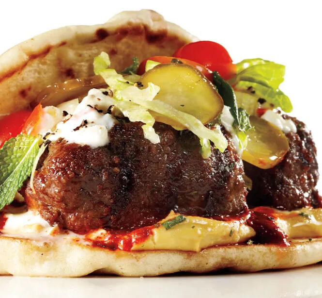 A fiery, flavor-packed lamb patty seared to perfection and tucked into warm, soft flatbread, this bold burger hits with aromatic spices, juicy richness, and a satisfying kick of heat. Layered with crisp greens, cooling yogurt, and fresh herbs, every bite delivers a delicious balance of spice and refreshment. High in protein and full of hearty, Mediterranean-inspired goodness, it’s a vibrant, muscle-fueling meal that keeps you satisfied and ready for more.