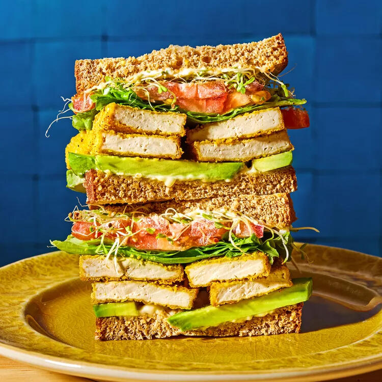 A vibrant stack of crisp veggies, creamy spreads, and hearty plant-based proteins, this powerhouse sandwich layers hummus, roasted or fresh vegetables, protein-rich tofu, beans, and whole-grain bread into a colorful, crave-worthy bite. Every mouthful is fresh, crunchy, and deeply satisfying, delivering long-lasting energy, plenty of fiber, and clean, muscle-friendly protein—all while tasting bright, wholesome, and irresistibly delicious. A plant-powered meal that fuels you just as well as it delights.