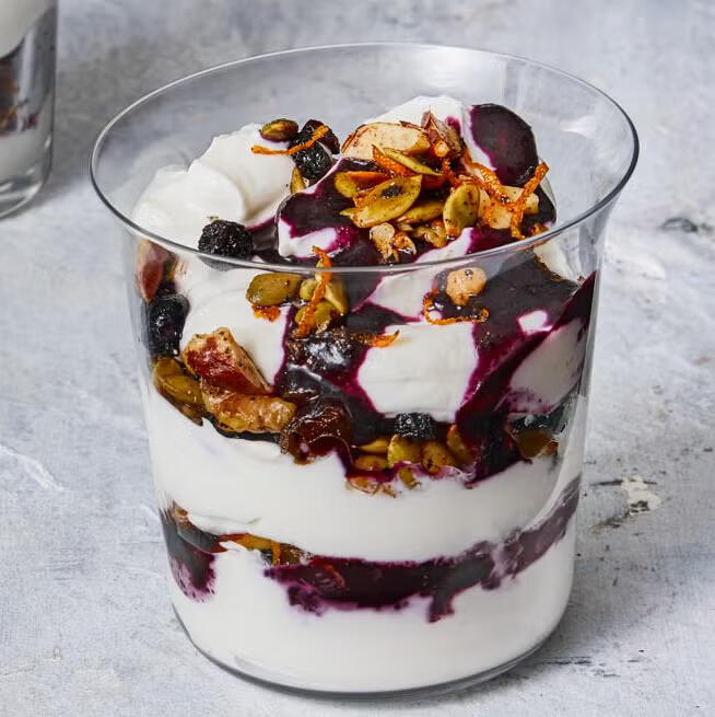 A vibrant layered delight of juicy blueberries, creamy yogurt, and a crunchy mix of toasted nuts, this parfait delivers a perfect balance of sweet, tangy, and nutty goodness in every spoonful. Bursting with antioxidants, protein, and healthy fats, it keeps you full, energized, and glowing from the inside out. Fresh, wholesome, and irresistibly satisfying—your ideal pick for a power-packed, smart, flavorful snack.